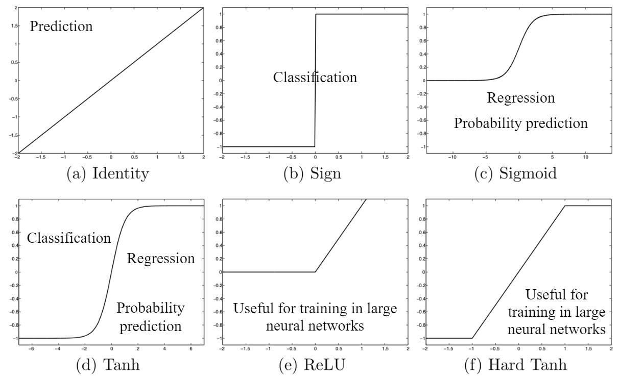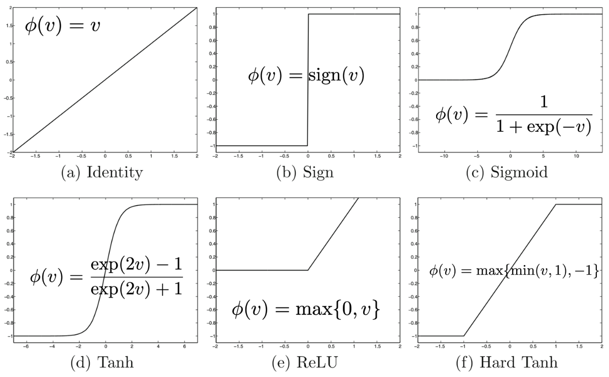 Existen muchas funciones de activación utilizadas en la práctica, en lo que sigue mencionamos sólo algunas de ellas: