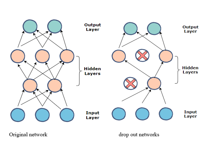 El dropout es una técnica de regularización utilizada principalmente en redes neuronales. Durante el entrenamiento, algunas unidades (neuronas) se “apagan” aleatoriamente, es decir, se les asigna cero, lo que obliga a la red a aprender patrones redundantes que son útiles para la predicción y, por tanto, a ser menos sensible a pesos específicos de neuronas individuales.