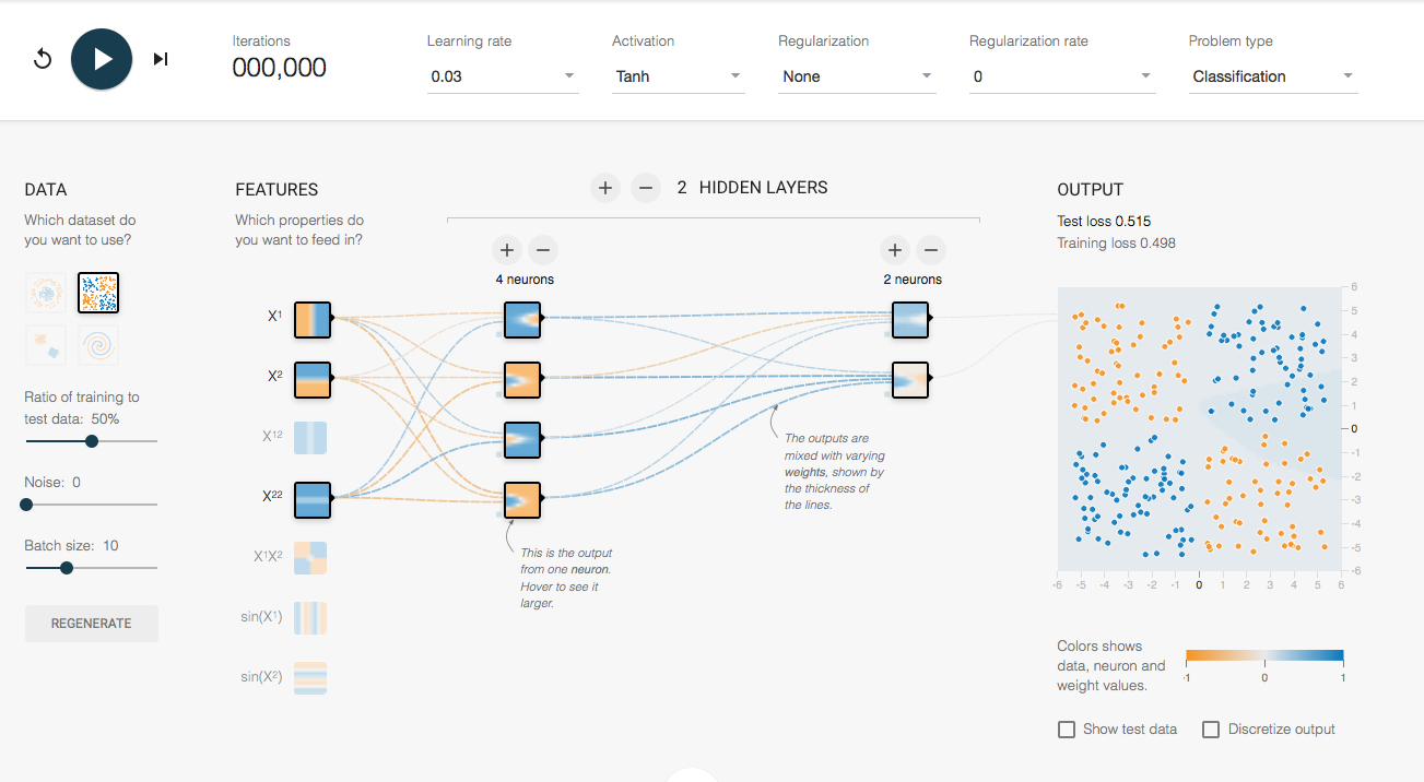 Playground Tensorflow es un sitio web que permite visualizar redes neuronales del tipo MLP