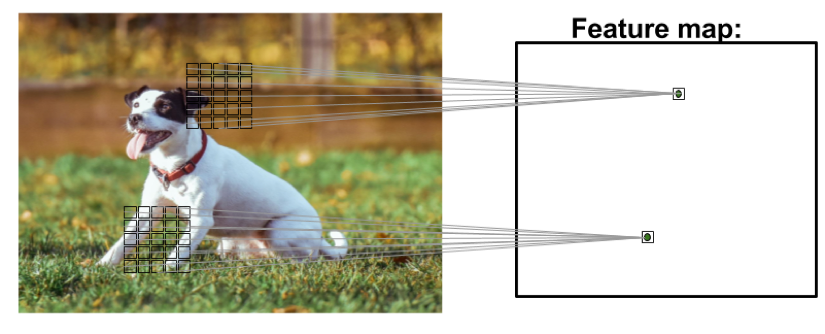 El parche local de elementos que participan de la convolución, se conoce como el campo receptivo local. Las CNNs generalmente se desempeñan muy bien en tareas relacionadas con imágenes, y eso se debe en gran medida a tres ideas importantes: