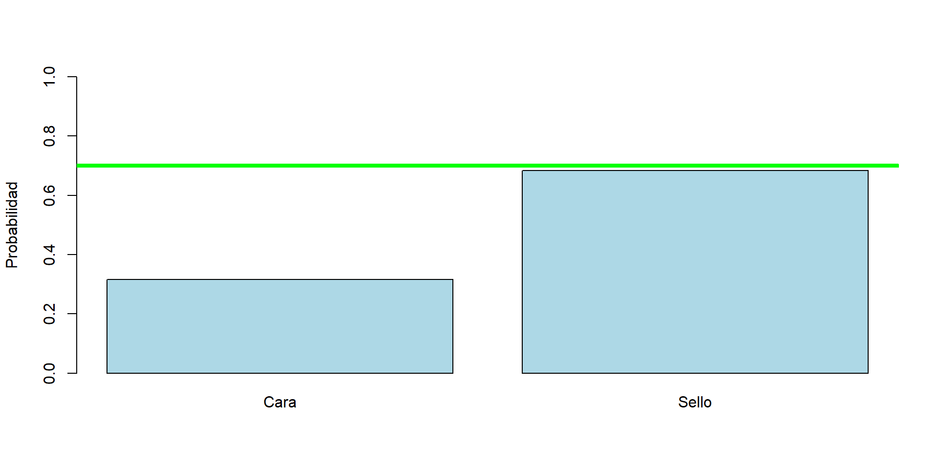En términos probabilisticos podríamos decir que el lanzamiento de esta moneda corresponde a una Variable aleatoria Bernoulli. También denotado por \(Bernoulli(p)\).