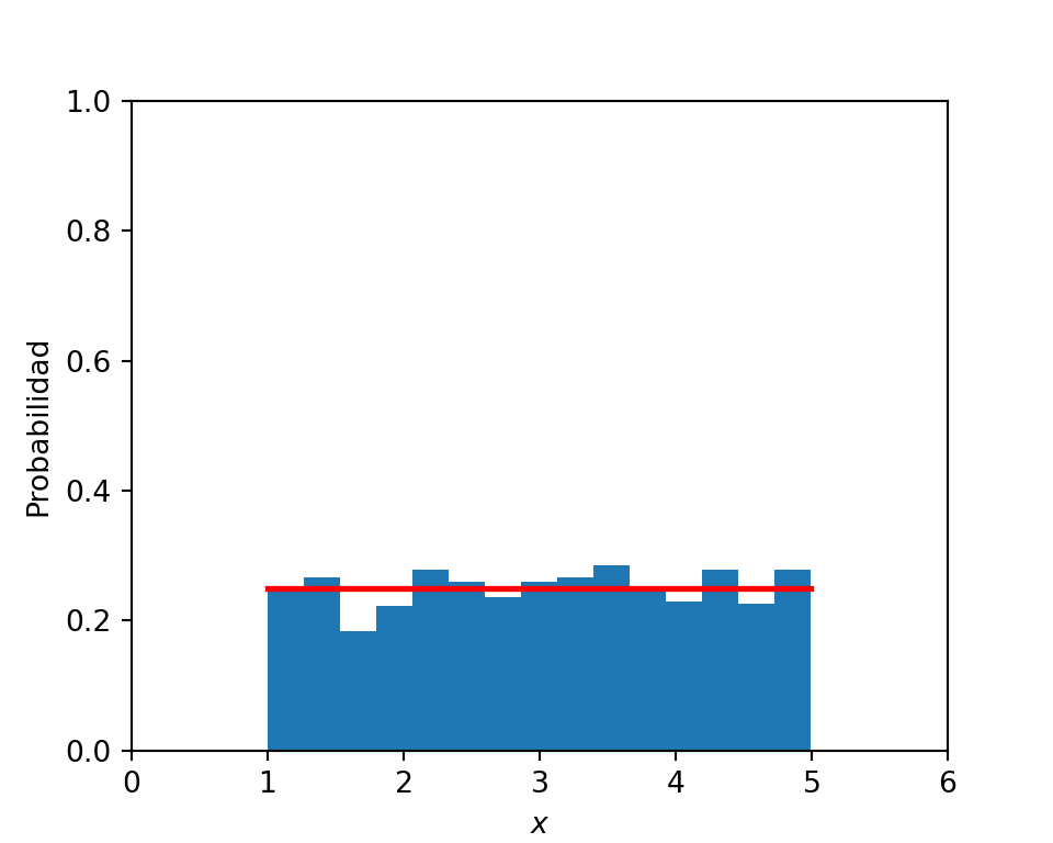 Para calcular el valor de \(\theta\) podemos emplear \(U\), que se encuentra distribuído uniformemente entre \((0,1)\). Entonces podemos escribir \(\theta\) como