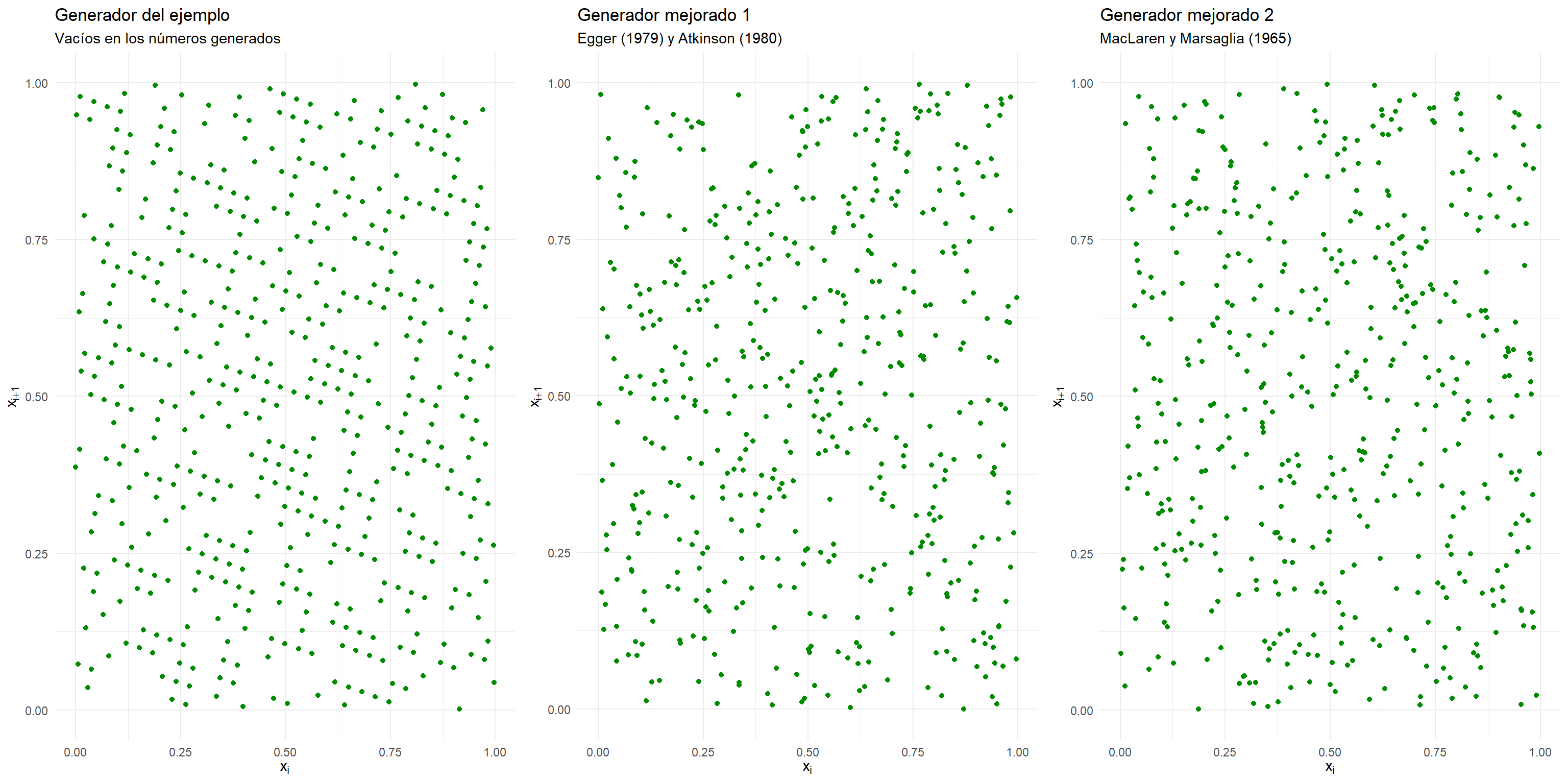 donde: \(k\) es el orden del generador y \((x_{0}, x_{1}, \ldots, x_{k-1})\) es la semilla (estado inicial).