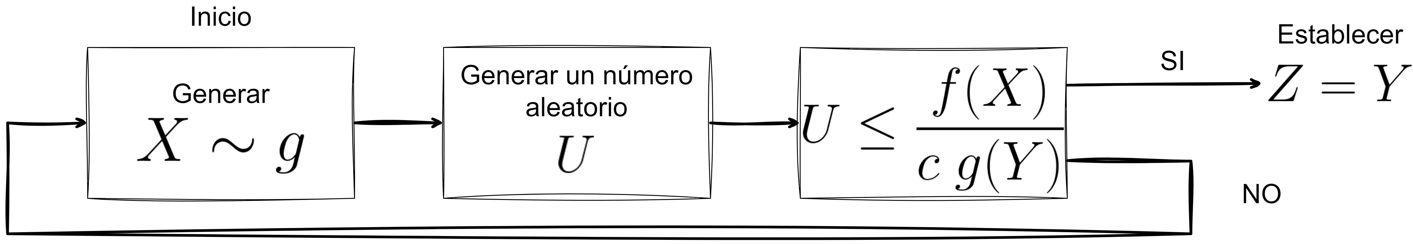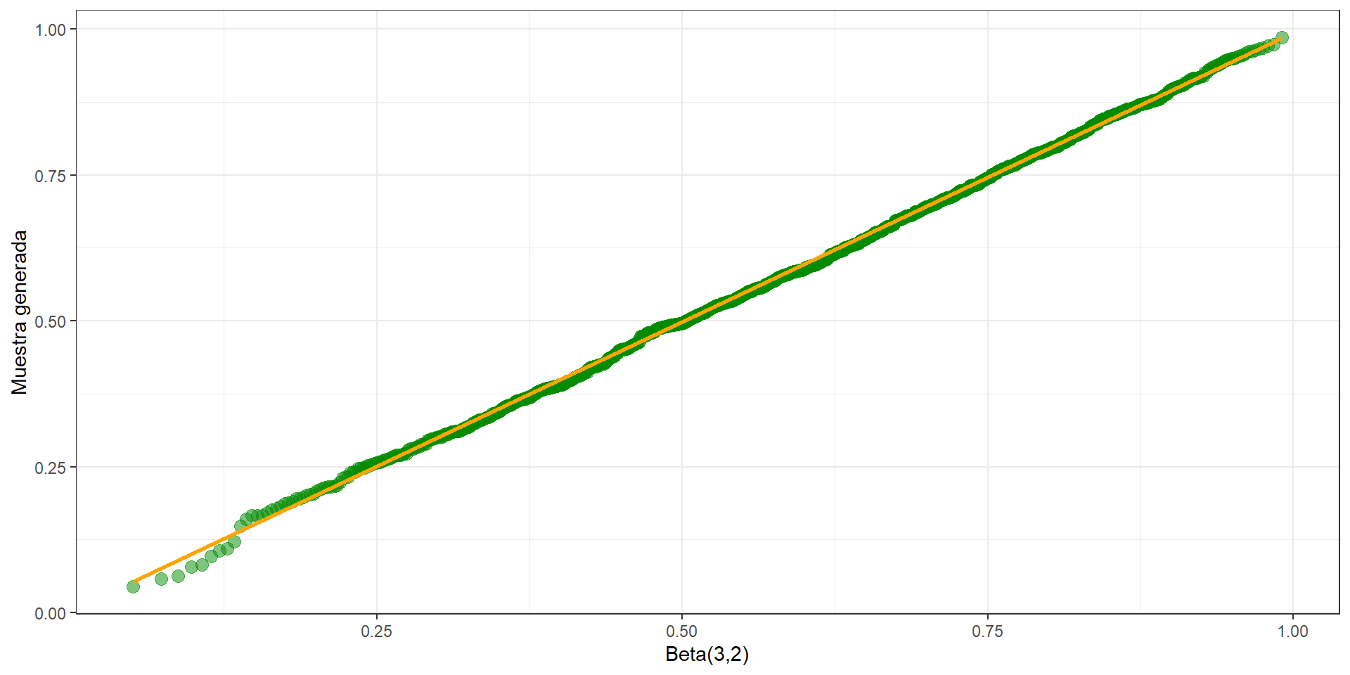 Este método es sencillo de implementar, siempre y cuando \(F_{X}^{-1}\) sea posible de computar.