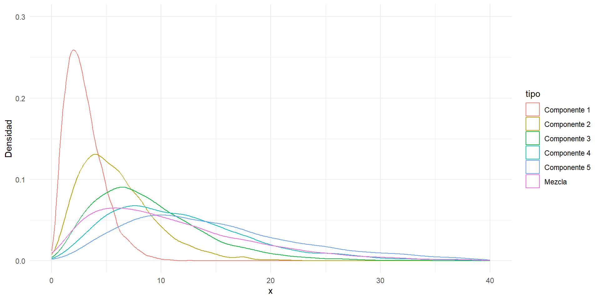 donde la población muestreada es \(N_d(\mu_1, \Sigma_1)\) con probabilidad \(p\), y \(N_d(\mu_2, \Sigma_2)\) con probabilidad \(1 - p\).